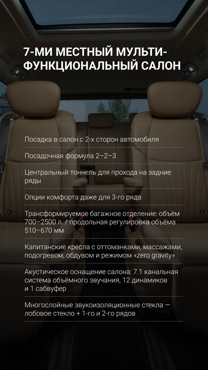 | Выдвижная подставка для ног сидений второго ряда (оттоманка) | ✔ |